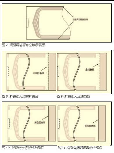 醫(yī)用自封袋的封口,是揭去袋口雙面膠帶的離型紙,經(jīng)折疊后將雙面膠寬度的二分之一貼在塑料膜上,另二分之一貼在透析紙上。為了滿足此要求,折疊線定位及形式也經(jīng)歷了數(shù)次的改進(jìn)。